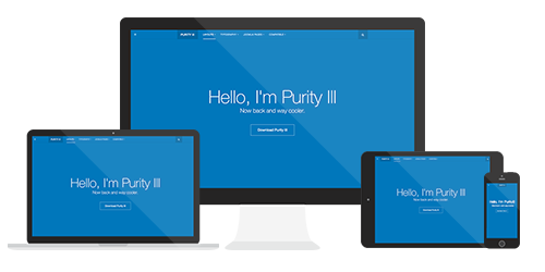 Fully responsive Purity III is a fully responsive Joomla template. It looks amazingly beautiful in all screen sizes: from a wide screen desktop to tablet and mobile devices. All props go to the powerful T3 Framework.